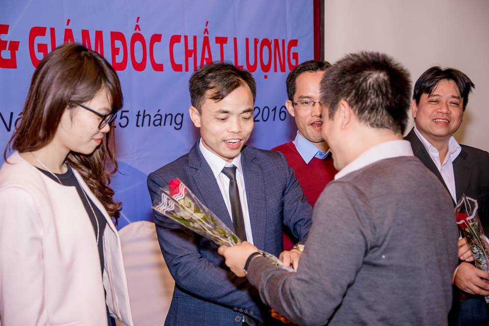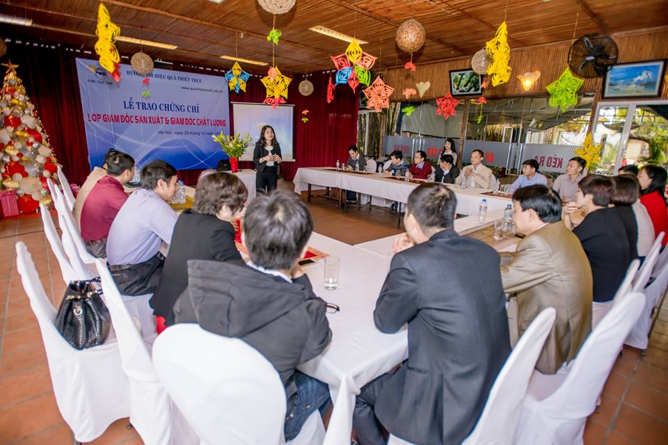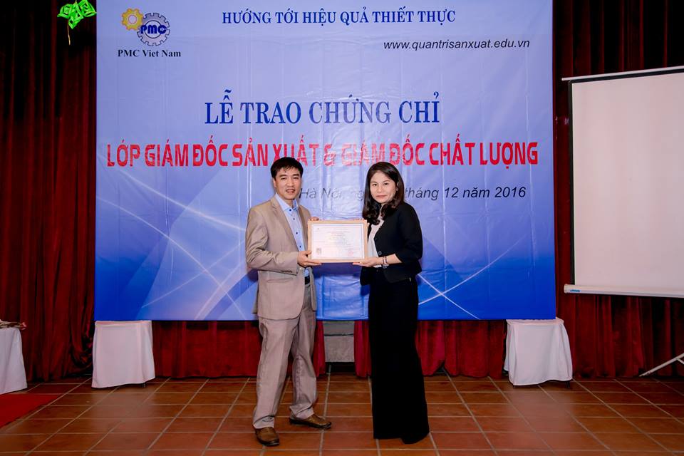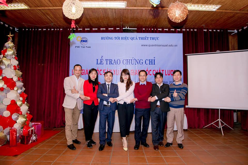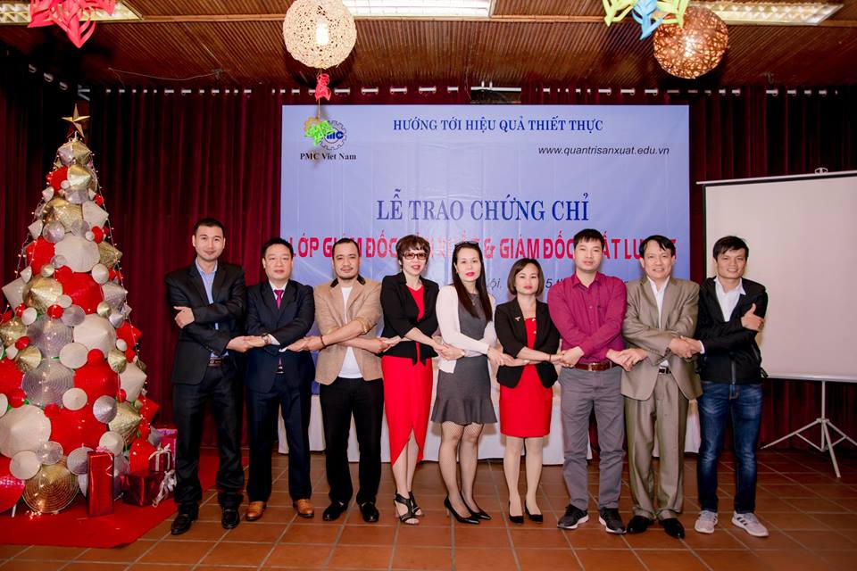 Chủ nhật ngày 25/12 vừa qua, các học viên thuộc chương trình đào tạo GIÁM ĐỐC SẢN XUẤT CHUYÊN NGHIỆP, GIÁM ĐỐC CHẤT LƯỢNG CHUYÊN NGHIỆP đã tham dự buổi Lễ trao nhận Bằng tốt nghiệp và cùng nhau chia sẻ những thành quả, hiệu quả đã đạt được sau đào tạo với những con số thống kê, đánh giá cụ thể, định lượng được cũng như sự phân tích nguyên nhân, phương cách triển khai của chính mình. Một buổi họp mặt trong không khí trang trọng, ấm cúng, thân tình của các học viên trong lớp.Bao trùm không khí của ngày họp mặt đó là những tình cảm, sự yêu mến của các học viên dành cho PMC, những gì đã làm được trong quá trình tham dự cũng như sau đào tạo được các học viên và cựu học viên chia sẻ một cách cởi mở, thân tình. Ngoài những học viên vì công việc cuối năm không thể tham dự được, có nhiều học viên đến tham dự buổi lễ từ rất sớm, những học viên đi từ Hải Phòng, Nam Định, Thái Bình, Hưng Yên,… về tham dự khá đầy đủ – đó là món quà quý giá, nguồn động viên khích lệ tinh thần lớn dành cho PMC Việt Nam.
