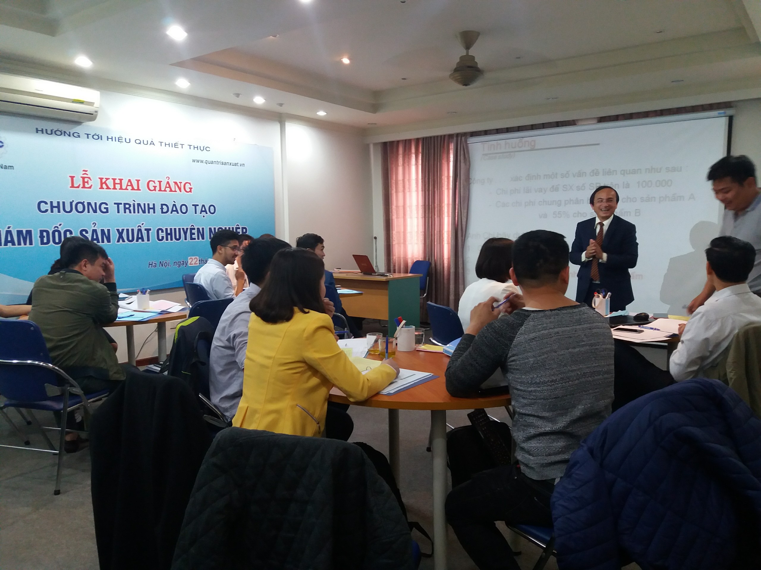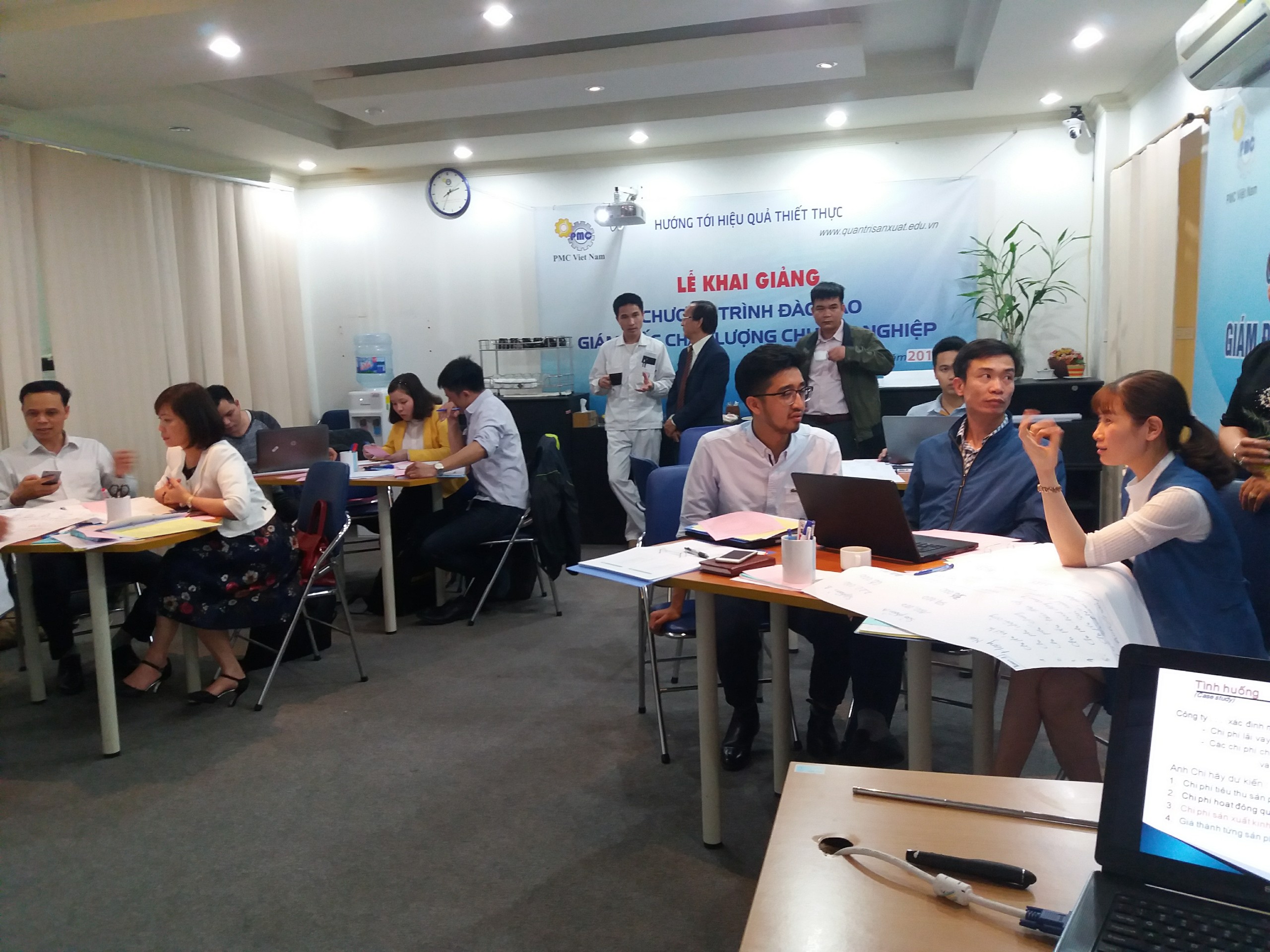 Trong 2 ngày, 07-08/04/2018, TRUNG TÂM ĐÀO TẠO QUẢN TRỊ SẢN XUẤT VÀ CHẤT LƯỢNG PMC đã tổ chức khóa học KIỂM SOÁT CHI PHÍ, TÍNH GIÁ THÀNH SẢN PHẨM với sự tham gia của các học viên đến từ các doanh nghiệp sản xuất thuộc nhiều lĩnh vực khác nhau như Thực phẩm, Cơ khí chế tạo, Nguyên vật liệu xây dựng, Phụ tùng ô tô, xe máy, đóng tàu, máy lọc nước,… Với kinh nghiệm thực tiễn và bản lĩnh đứng lớp, giàu kinh nghiệm dẫn giảng của Chuyên gia PMC trong phương pháp đào tạo mang tính ứng dụng thực tiễn cao, các học viên đã có 2 ngày học hữu ích và thiết thực. Những tình huống thực tiễn được tất cả các học viên cùng nhau thảo luận hết sức sôi nổi nhằm đạt mục tiêu đào tạo của Chuyên đề và mục tiêu học tập của học viên, của doanh nghiệp…